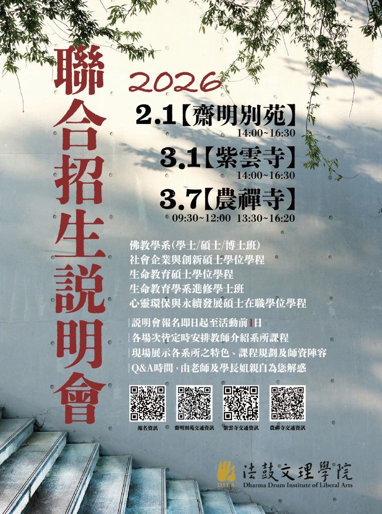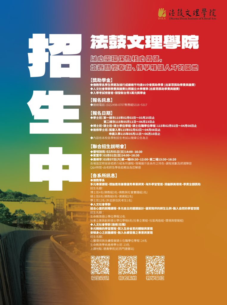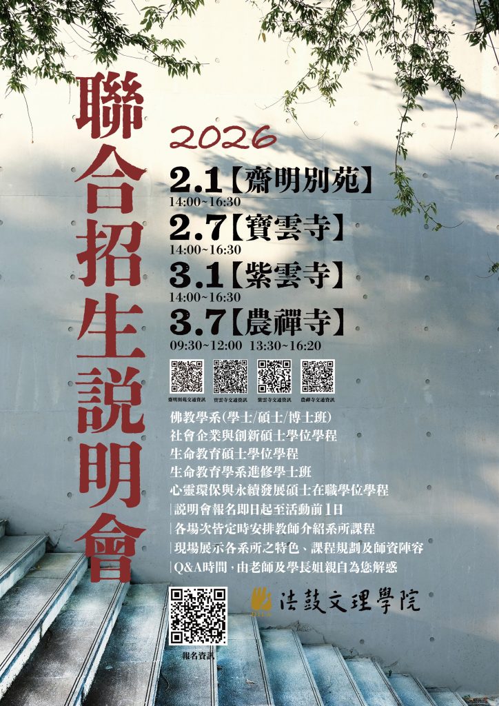 歡迎參加法鼓文理學院115學年度各學制聯合招生說明會。